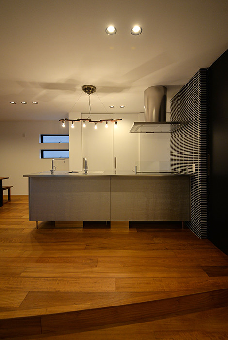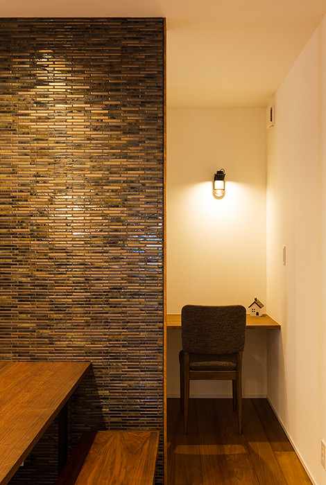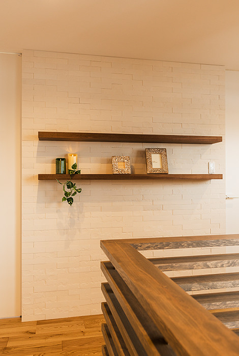 無垢材、タイル、天然石、アイアン、ステンレス・・・室内にバランス良く配置された多種多様な素材がさまざまな表情で空間を彩る。オープンガレージと中庭がl機能性とデザインを兼ね備えた上質な住まい。