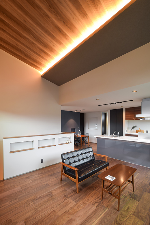 新潟市江南区|1.5階の高天井とカーテンレスのLDKで、海外照明と家具が映える住まい|完成見学会【予約制】