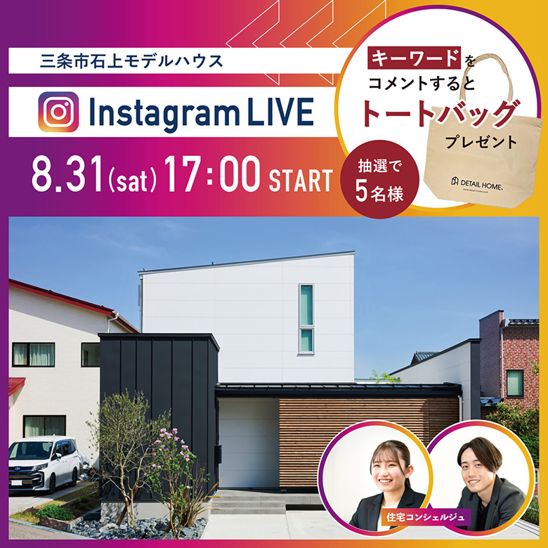 【開催終了】【8/31(土)17:00】Instagram LIVE 見学会|三条市石上モデルハウス