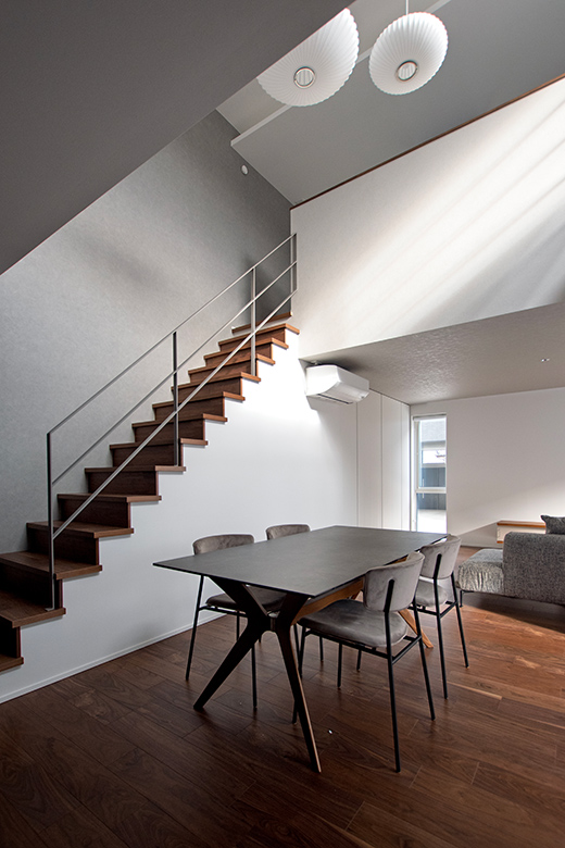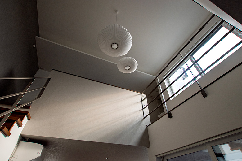 新潟市江南区|1.5階の高天井とカーテンレスのLDKで、海外照明と家具が映える住まい|完成見学会【予約制】