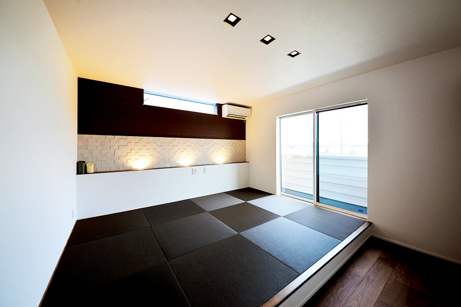 主寝室はベッドを置かないモダンなタタミスタイル