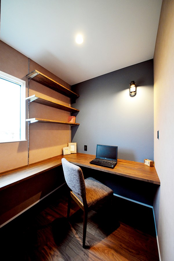 ご主人こだわりの書斎はアインティーク調の色合いでコーディネート