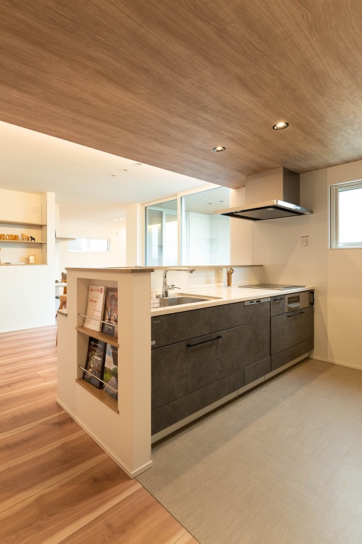 ダイニング・キッチンの動線上には、ご夫婦で楽しむお料理本などが収まる♪
