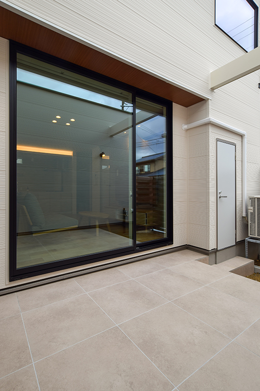 外からの視線を遮り、開放的でくつろげるタイルテラス