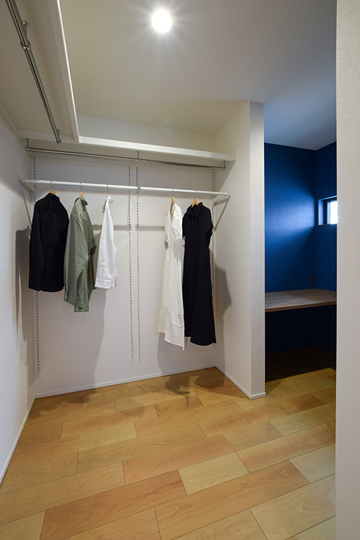 可動棚とハンガーパイプで洗濯後のタオルや衣類を手早くしまえるファミリークローゼット