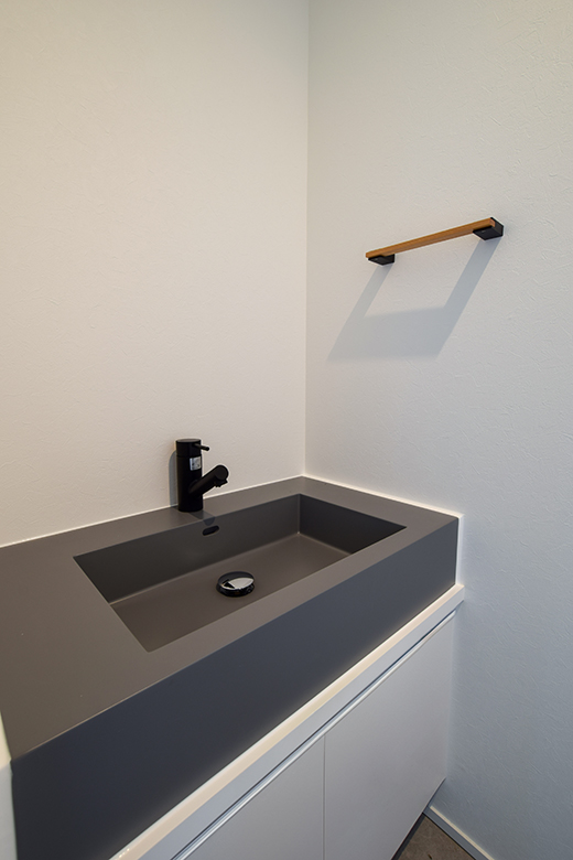 水栓の黒やグレーの洗面台にもこだわりを感じられる