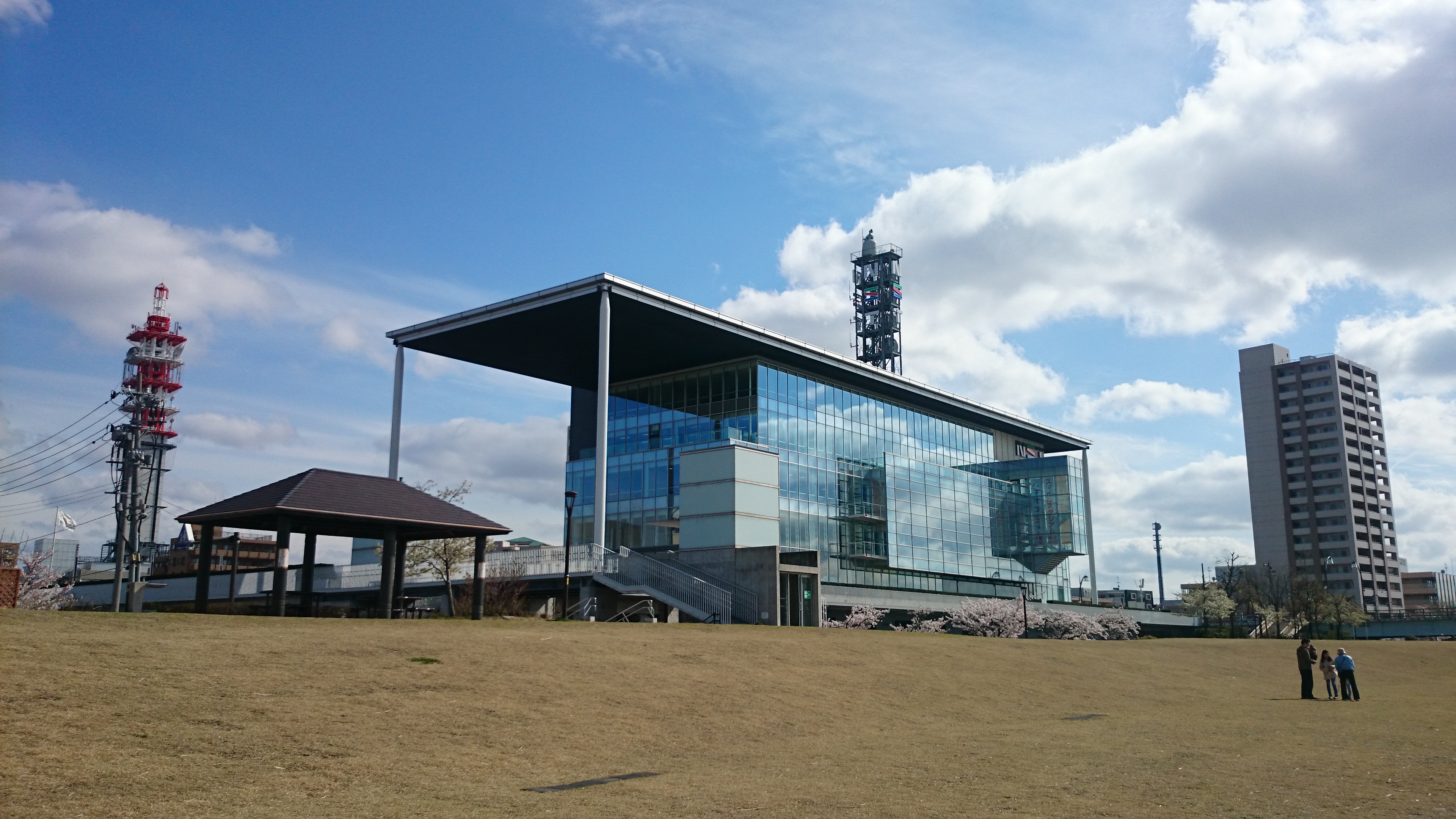 この建物はやすらぎ堤とデッキで連携するなど周りの環境とも調和した近未来的な建物だと思います。