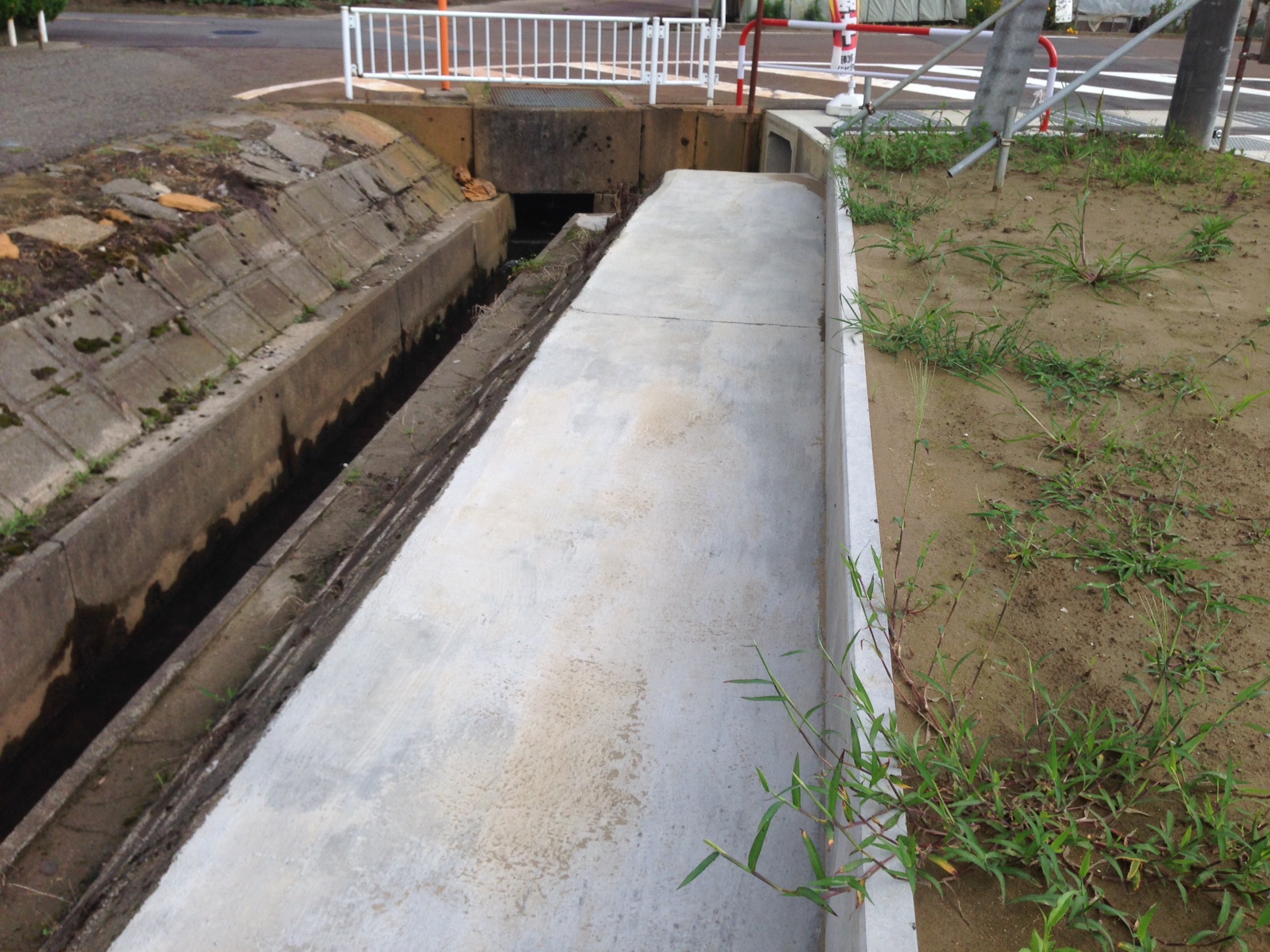 私の場合は、そこまで流れは強くなかった点と、水路も浅く、敷地の裏から若干の距離があった為、妥協のポイントに。