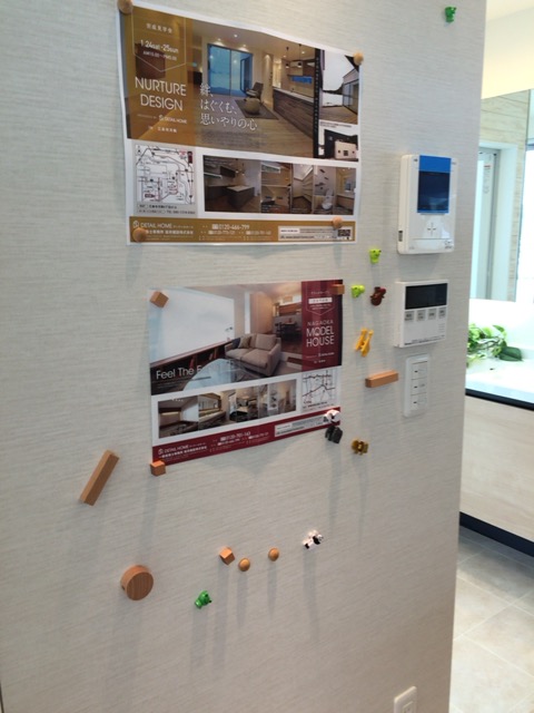 そしてキッチン脇の壁には鉄板にクロスを巻き貼った家族連絡ボードを設置し、学校からのおたよりや、お子様の絵などをマグネットではることができる仕掛けになっています。
