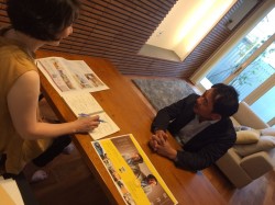 インタビューを受けるは弊社住宅事業部のボス!坂井義栄専務。