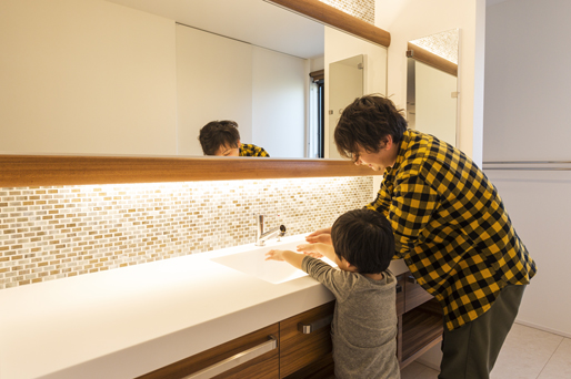 実物を見た方が間取りのスケール感や造作家具、タイルなどの色合いなど