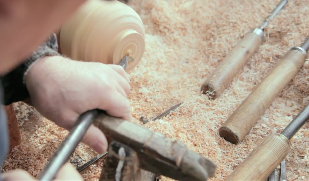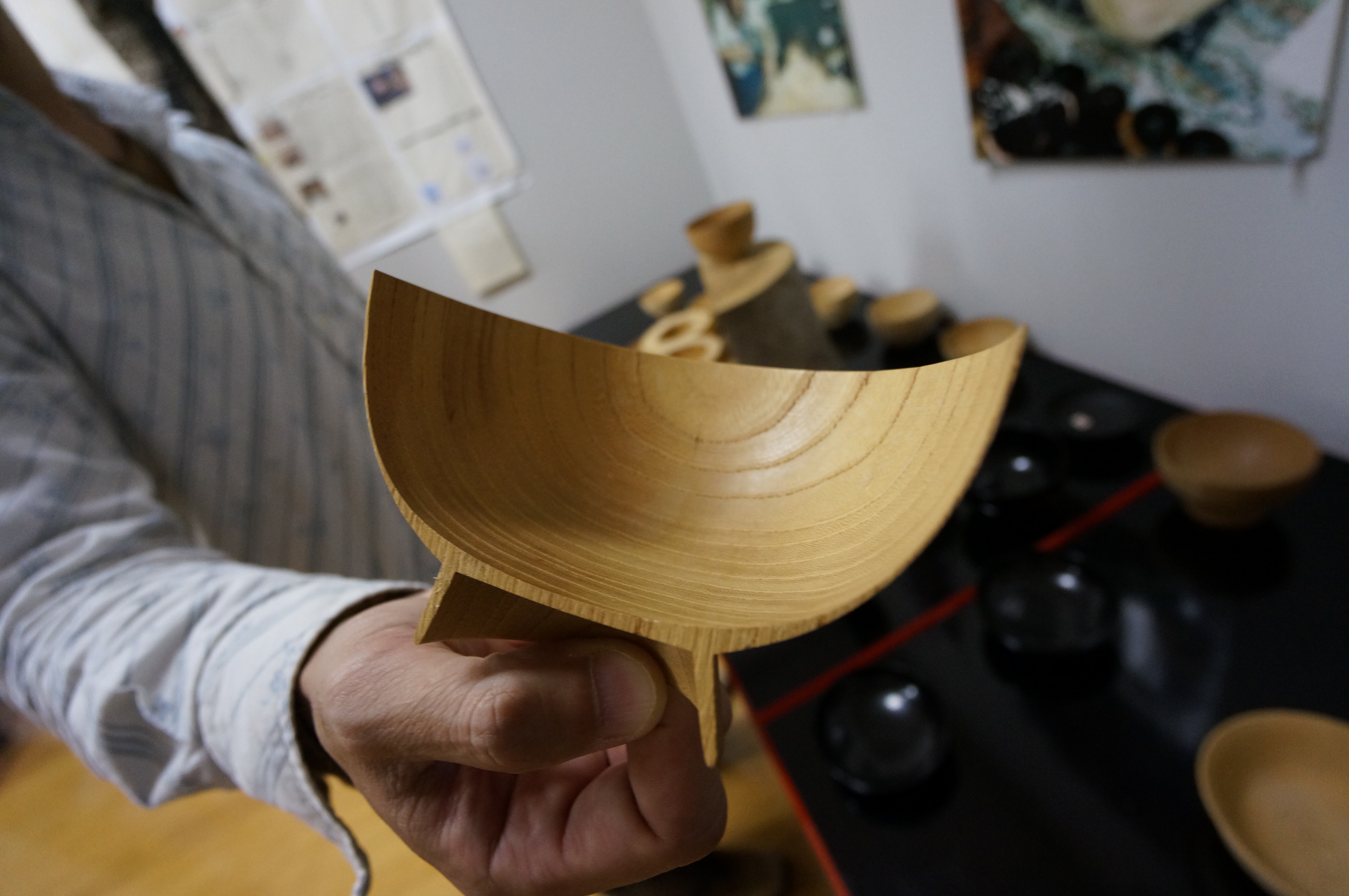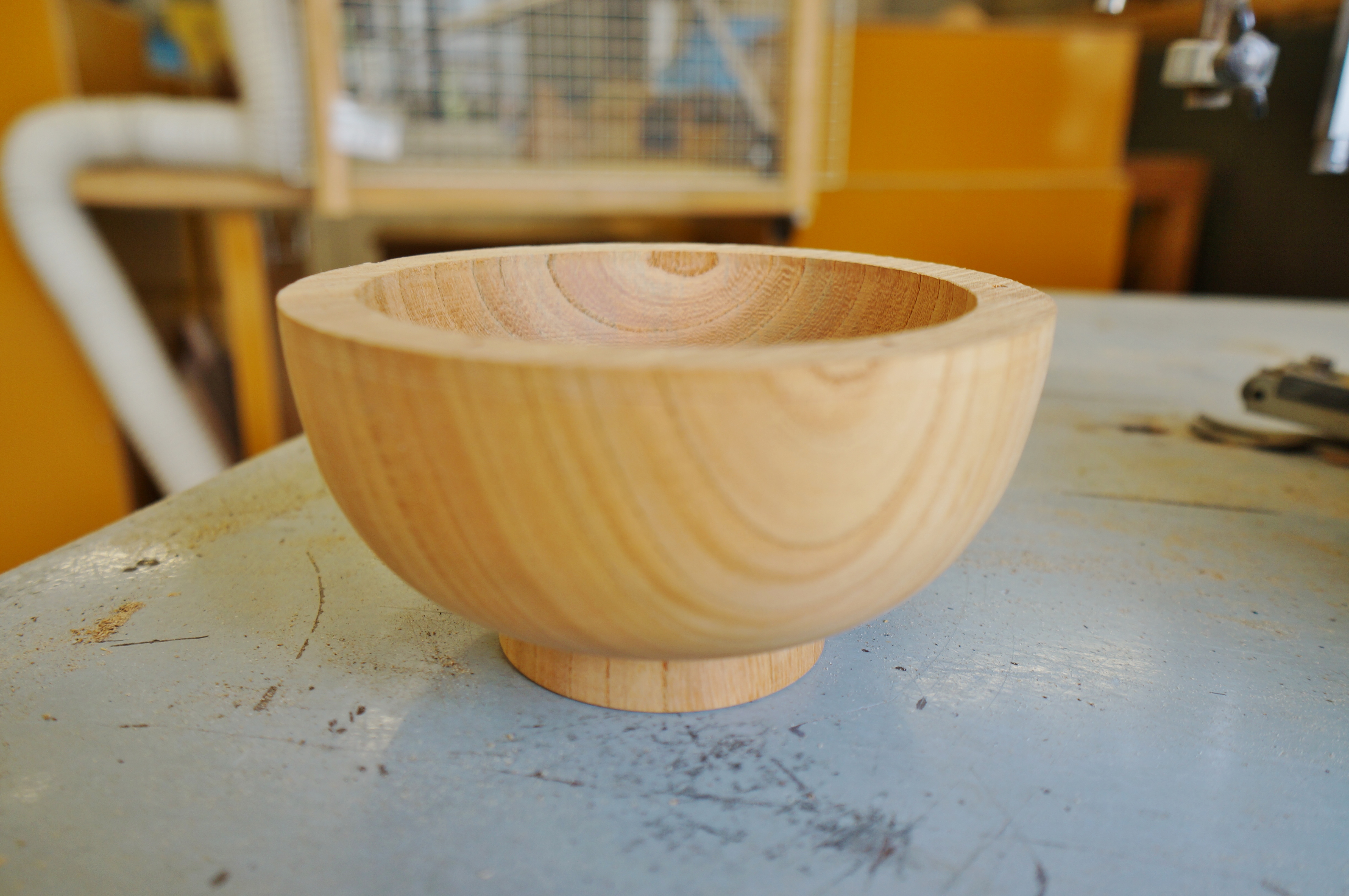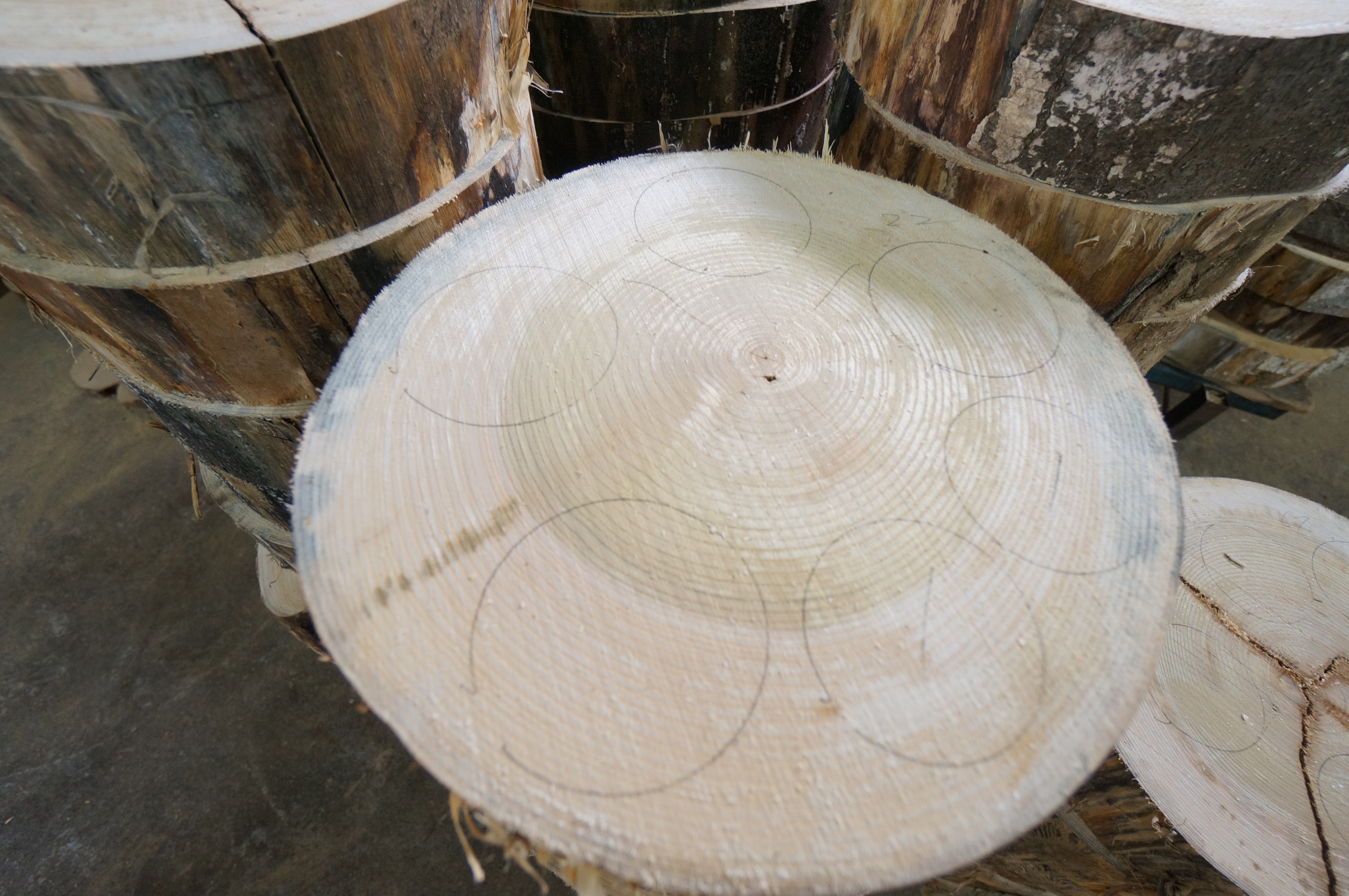 木を生の状態で大まかな形に「荒挽き」をする。このあとの乾燥による木の縮みを考慮し、少し大きめに仕上げてある。