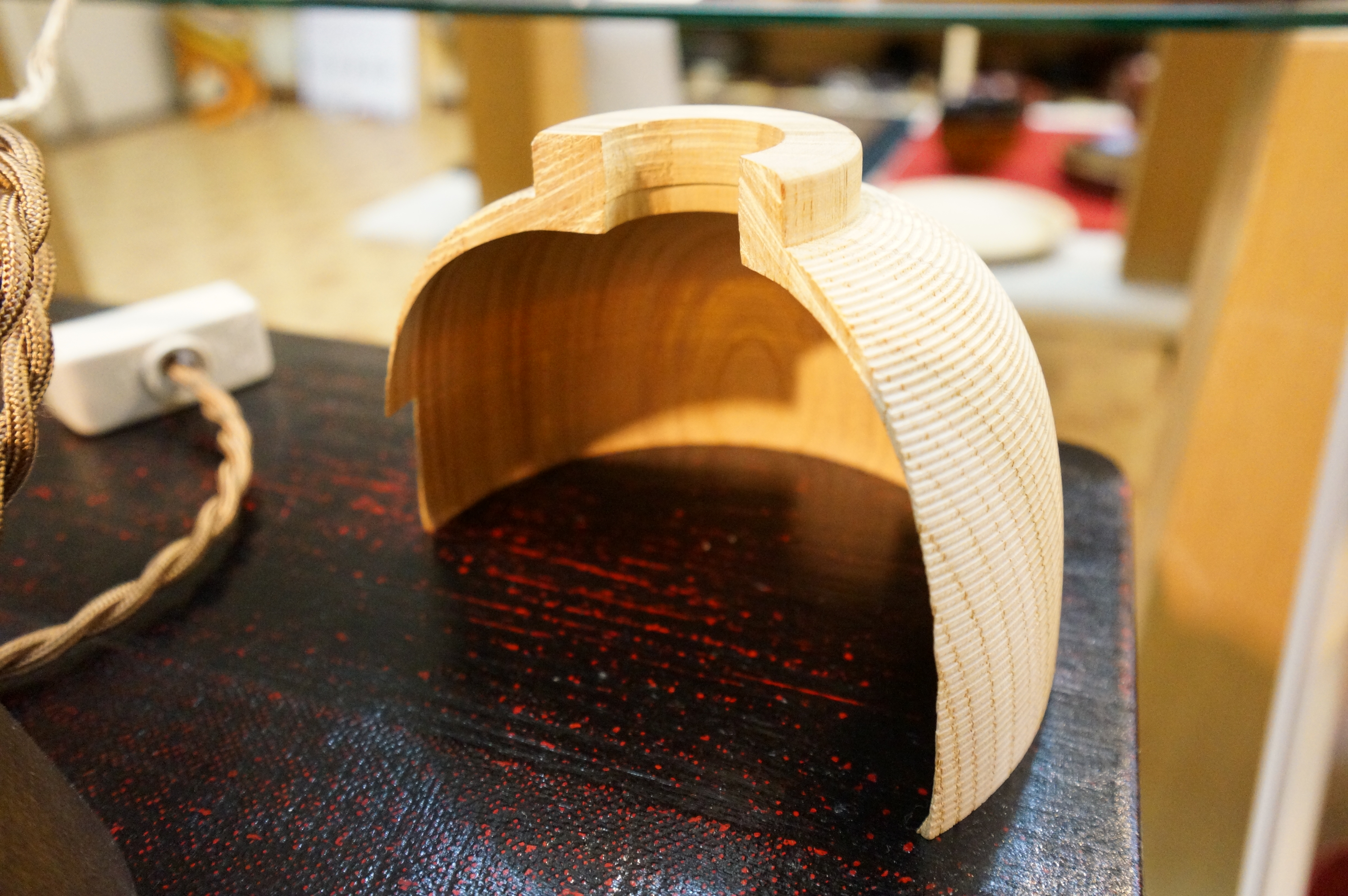 薄挽(うすびき)は石川県加賀市山中温泉で400年以上に渡り発展してきた木工技の一つ。この薄挽技法を用いて、熟練の職人はこの光を透過する薄い木のランプシェードを作り出すことができる。