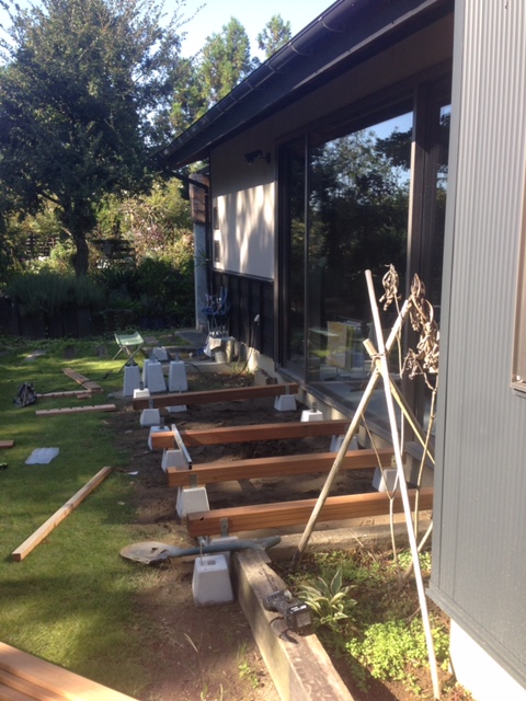 遠い昔(二十年前)に見習いとして大工さんを経験させて頂きまして、これくらいのデッキなら何とかつくれます(^^;)