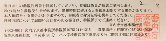今回、郵送申し込み枠でようやく参観許可書をGETいたしました!