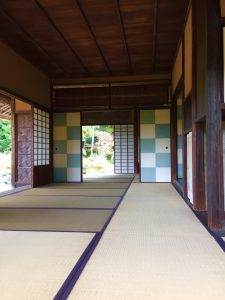 茅葺入母屋造の茶亭、松琴亭(しょうきんてい)・一の間