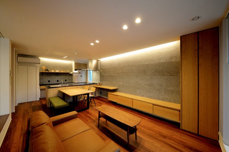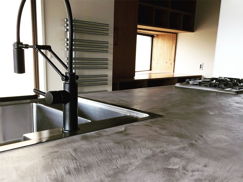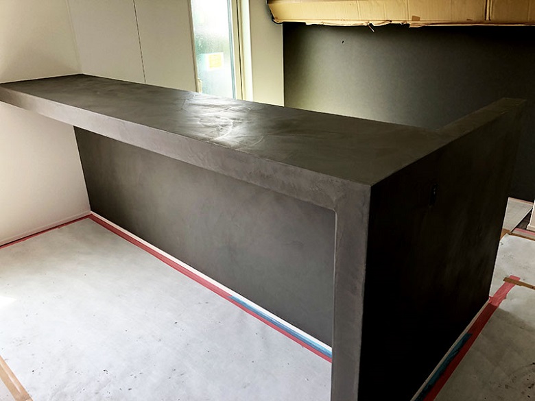 従来、コンクリートを家具などに塗ることはむずかしかったのですが、モールテックスを施工することで、重厚感を表現できるようになりました。