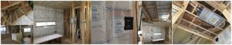 内部は、木材の壁下地や造作の下地を入れたら、みるみる断熱で覆われていきます。