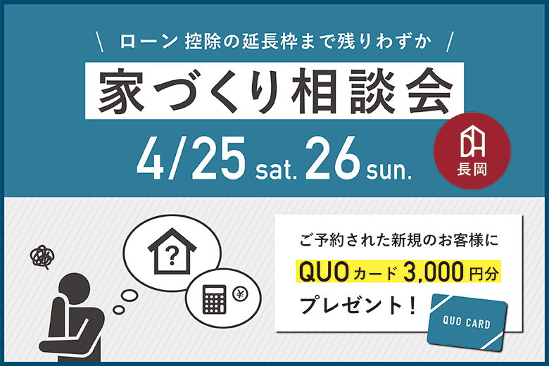 長岡支店では4/25(土)、26(日)に相談会を催します。