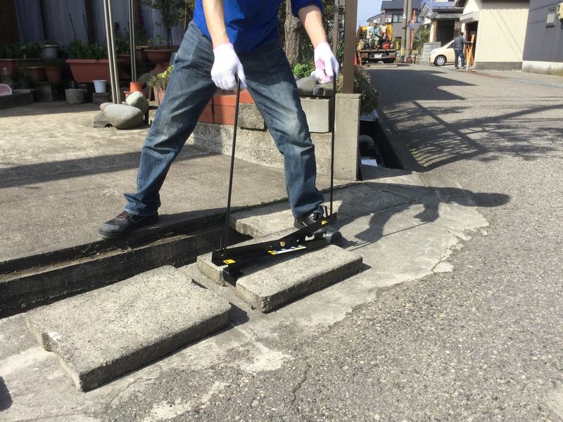 作業手順としては家の前の側溝蓋(ブロックかグレーチング)を外し、その中のどろや石などを取るという作業になります。