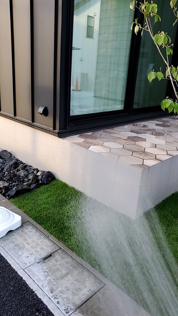 雨の降らない日は朝・夕1日2回、芝生の水やりと雑草取り。