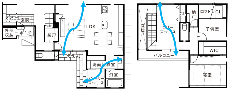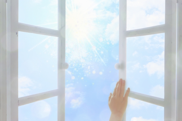 空気の流れをイメージして2箇所で対角側の窓を開けると効率の良い換気が出来ます。