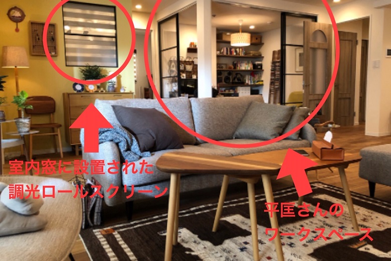 ・LDK~寝室間の室内窓調光ロールスクリーン(類似のものが神道寺のキッズスペースにあります。見たい方はスタッフにお声がけください)