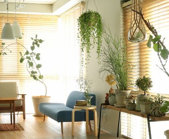 植物を大きさ分けして大→中→小の順に配置していくのが無難かと思いますが、大きいものは一つのインテリアにもなるので、置く場所は他の家具や間取りとも関係してきます。
