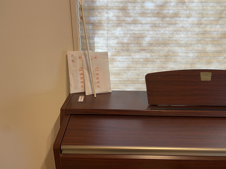 お祓いをしたときにもらったお札と、破魔矢の置き場所がないことです。