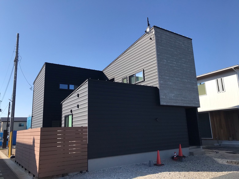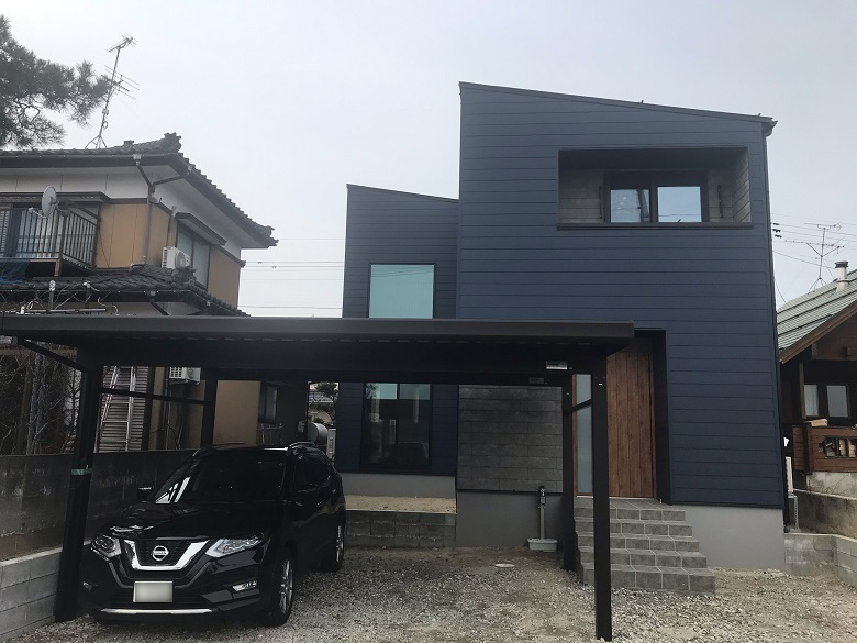 ④外壁材は、ネイビーのガルバリウム(最近大人気!)
