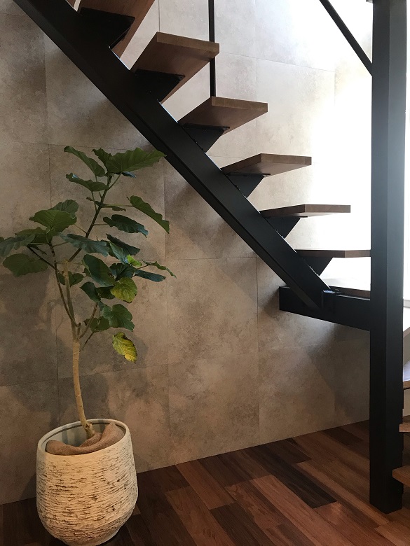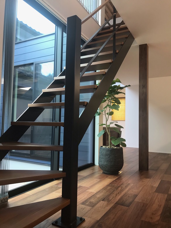 ④玄関ホールにはスケルトン階段があり、空間を広く見せてくれます。