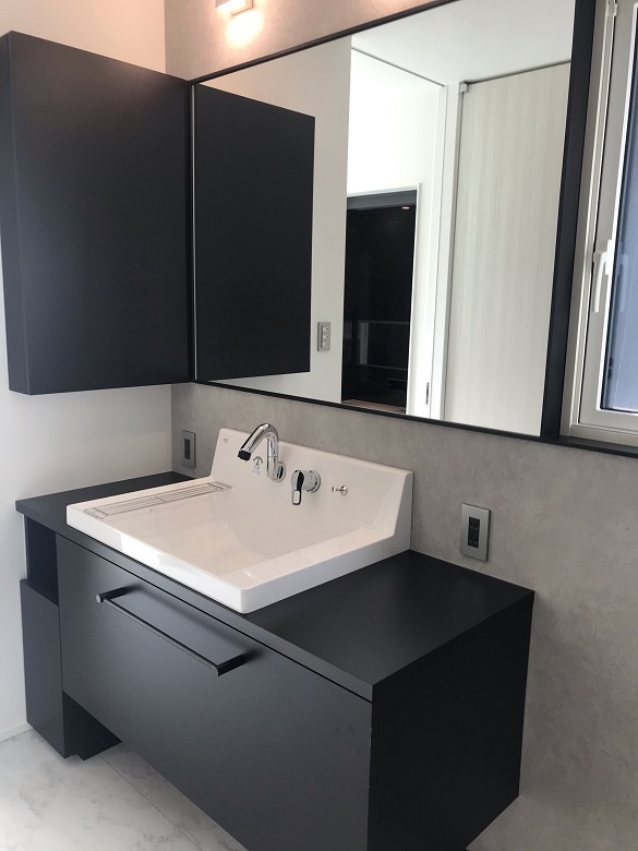 ⑦ホテルライクがテーマでしたので、水廻りはモノトーン調でまとめました。