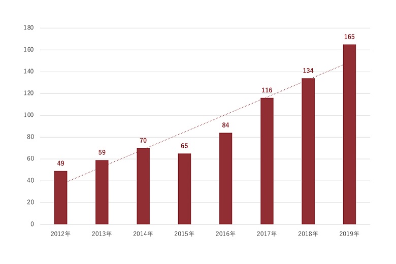 こちらのグラフをご覧の通り、過去10年、ほぼ毎年のように着工棟数を伸ばしています。