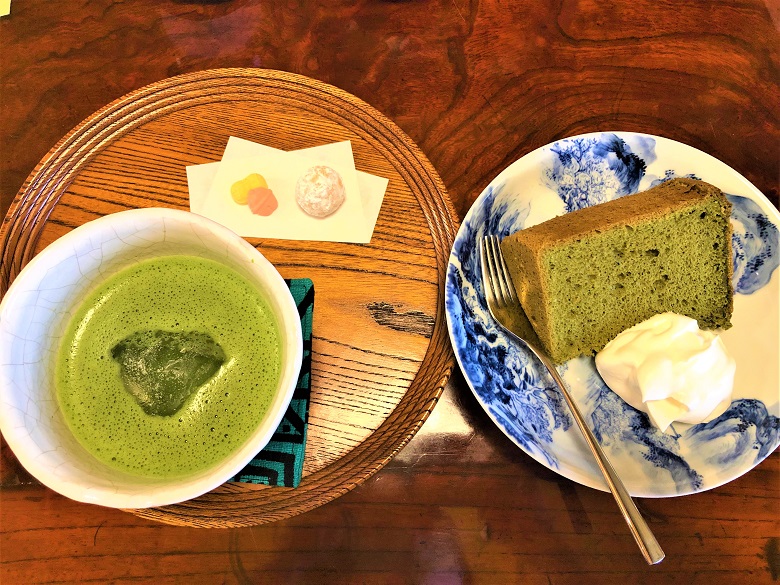 冷たい抹茶とシフォンケーキもいただき、とてもおいしかったです。