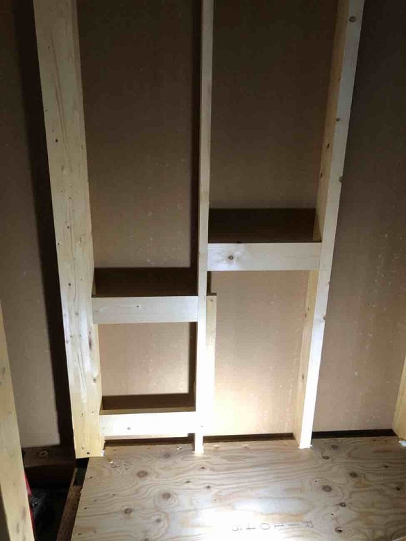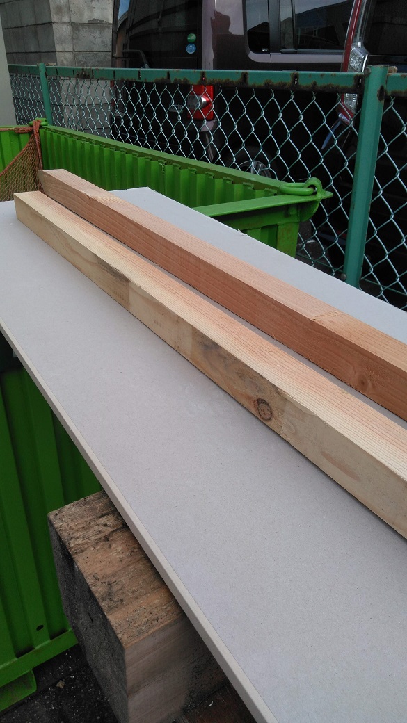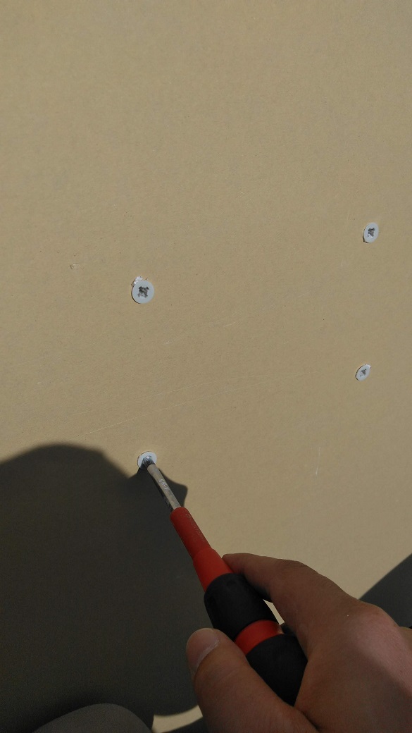 このようにボードを貼る前にビスが効くように、木下地をボードの裏に仕込んでおきます。