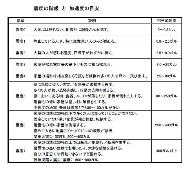 そこでさらに読み進めていくと震度には、加速度(ガル)が関係してくると。