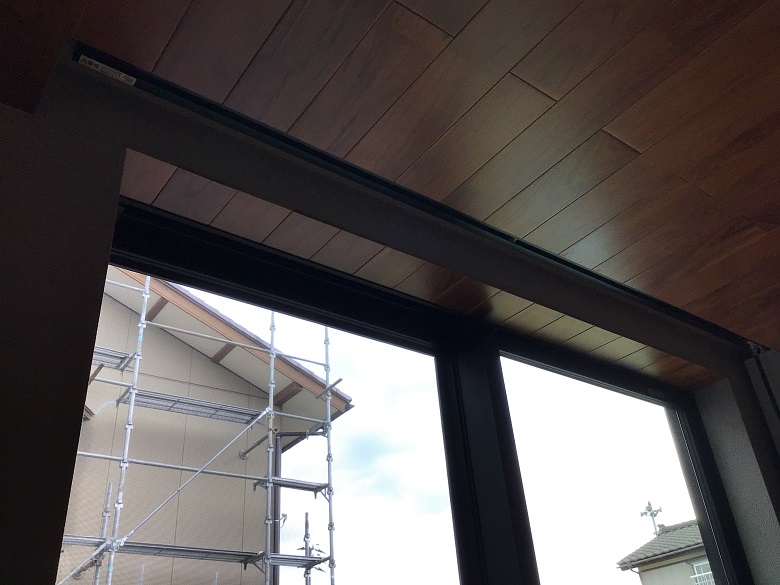 窓上部の天井を掘り込み、隠蔽BOXを造作する。