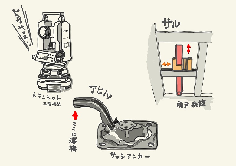 ●アヒル=鉄筋コンクリート造の建物でサッシを固定する時に使う部材
