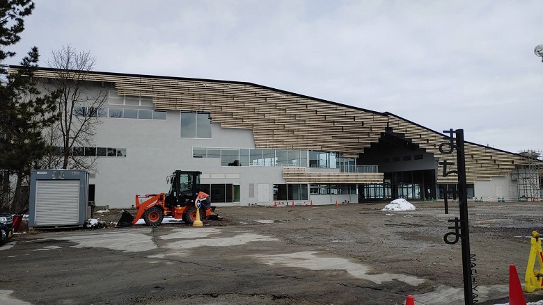 図書館の愛称も応募総数3000件の中から「まちやま」に決定し、建設現場も外部の足場が外れ、いよいよその姿を現してきました。