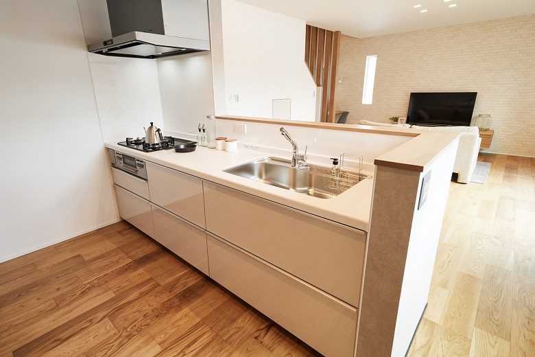 カップボードに置く家電を考えることはもちろん大切ですが、キッチン側の腰壁にコンセントがあると、ミキサーを使うときやタブレットでレシピを見ながら調理をするときに使えて便利なのでおすすめです。