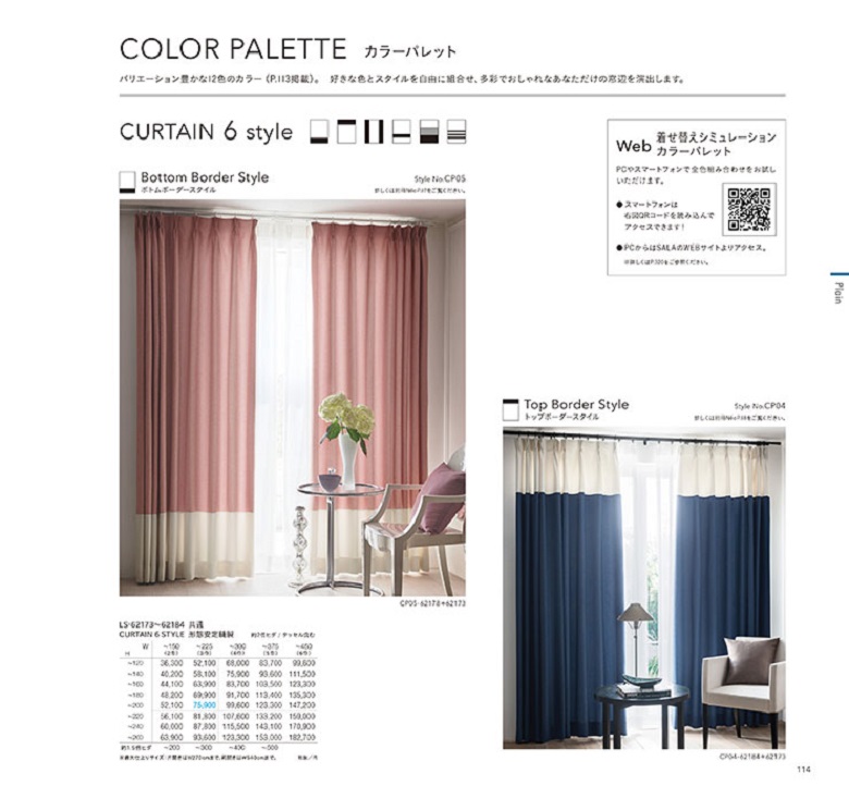 透け感のある厚地にすれば夏場でも爽やかな印象にもなりますし、トップボーダーの生地は視線を遮りながら光を取り入れることも可能です。