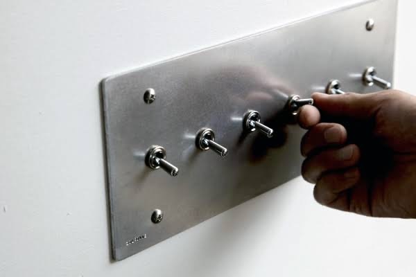 トグルスイッチとは、乗り物のコックピットにあるような工業的デザインのスイッチプレートです。
