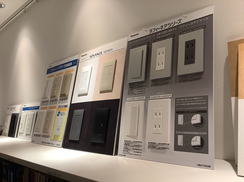 ディテールホームの打ち合わせスペースにもスイッチプレートの実物がありますので、ぜひご覧になってください!