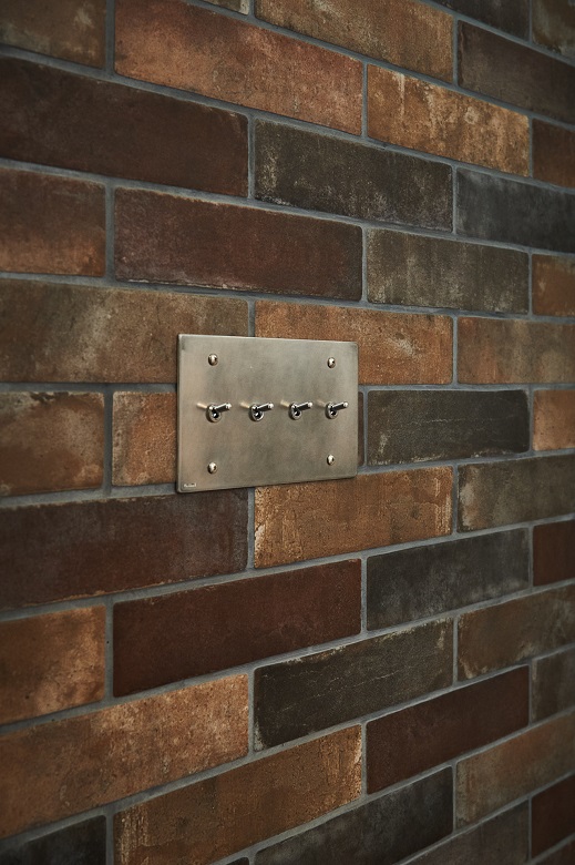 こだわりのトグルスイッチを使用し、レンガとのコンビネーションが空間を惹きたてています。