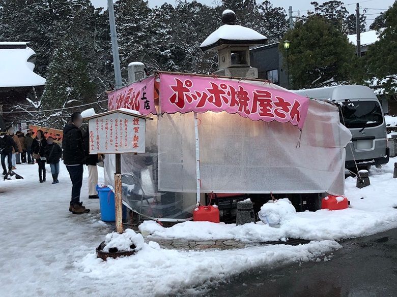 屋台が出ているので、毎年初詣の後はポッポ焼きを食べて一年がスタートします(笑)