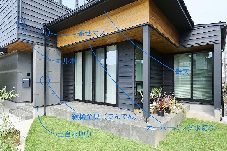 屋根の上に降った雨水を集めて、地面に流す役割を担っています。