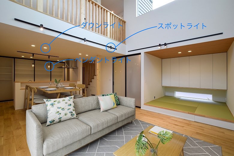コードやチェーンを用いて天井から吊るすタイプの照明器具のことです。