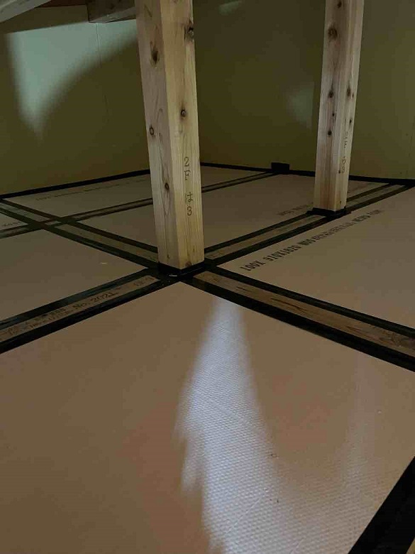 細かく時間のかかる作業になりますが、断熱施工時に気密を高めるため、コーキングやテープ処理をしてもらいます。