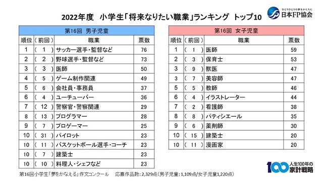 日本FP協会が毎年実施する「小学生がなりたい職業」の集計結果が4月に発表されたのですが、初です…