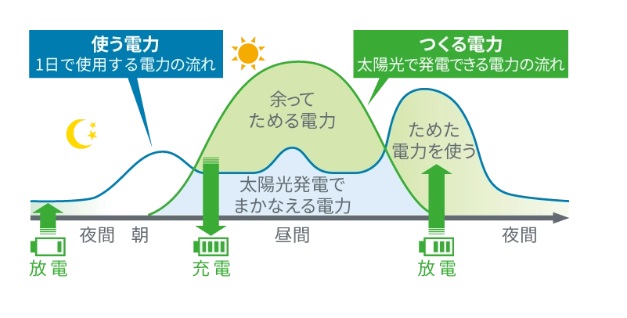 また、昼間は太陽光発電の電気を使い余った分は蓄電。